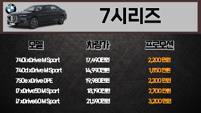 - 지금 구매해도 전혀 아쉽지 않은 금액이지만, 일부 모델은 6월 분기마감 할인을 기다리는 것도 현명한 선택일 수 있습니다.BMW 구매를 생각하셨던 분들은, 오늘 프로모션 정보 참조 해주시며 좋을 거 같습니다.